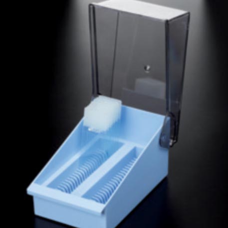 Fabricados en polestireno de alto impacto, pueden almacenar hasta 200 portaobjetos estándar.