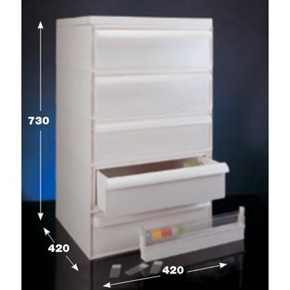 Armario archivador ABS, 5 cajones, para portaobjetos y bloques parafina