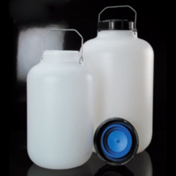 Bidón de boca ancha en color natural translúcido y tapón a rosca en color negro. Fabricado en polietileno de alta densidad.