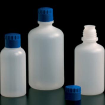 Botellas fabricadas en polietileno natural translúcido de alta densidad, pensados para el almacenamiento de ácidos y bases.