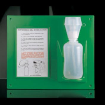Frasco lavaojos 1000ml. con tubo rebose, en soporte mural