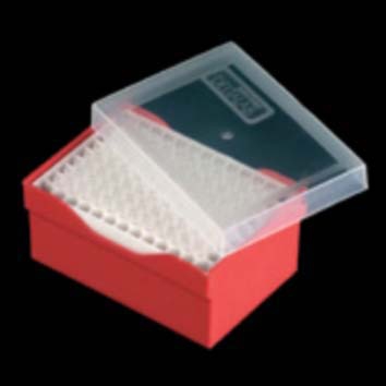 Rack con filtro ESTÁNDAR: tapa transparente, base en color rojo.