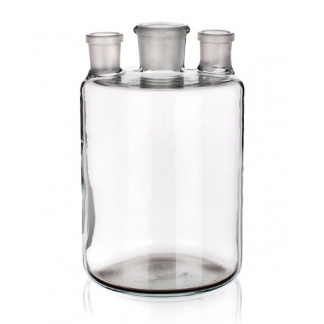 Frasco Woulff de 3 bocas 10.000ml. Simax Con 2 bocas laterales y 1 central, sin esmerilar. Volumen: 10.000 ml. Referencia: 634400 Marca: Simax « Volver