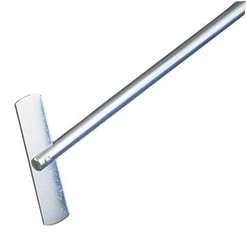 Hecha con acero inoxidable AISI 304, tamaño de la pala 60 x 15 mm, longitud 400 mm, Ø eje 8 mm.