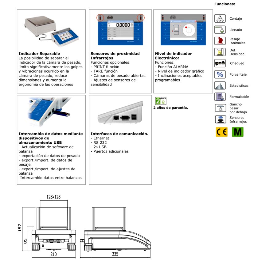 Balanza precisión, verificada M II, 4500 Gr., exactitud 0,01 Gr., plato 195x195mm.