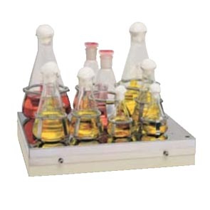 - Construida en acero inox. AISI 304 con orificios multiadaptadores para sujetar matraces Erlenmeyers de capacidades de 50, 100, 250, 500, y 1000 ml.