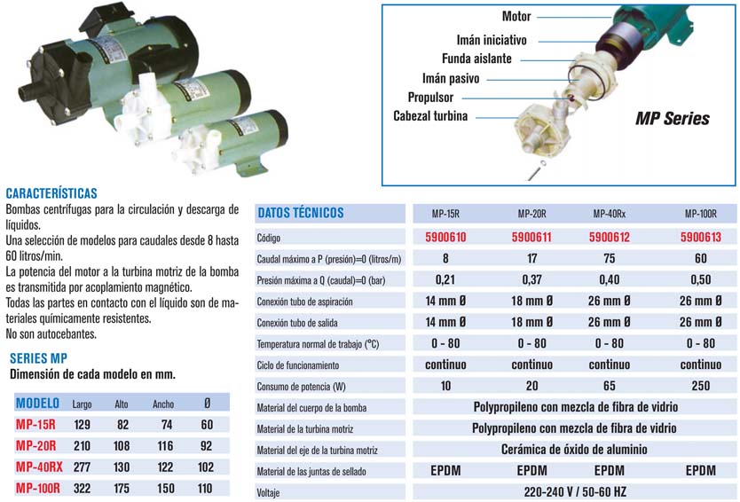 La potencia del motor a la turbina motriz de la bomba es transmitida por acoplamiento magnético.