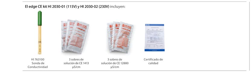 Conductímetro Edge, tipo tableta, con sonda HI763100, soporte, cables y soluciones