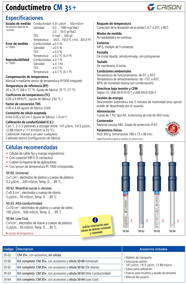 Conductímetro CM-35+, sin ningún accesorio, ni célula