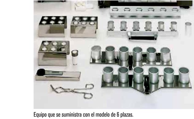 - Calefacción por resistencias eléctricas blindadas distribuidas por toda la superficie radiadora para asegurar el calentamiento de todas las muestras por igual.
