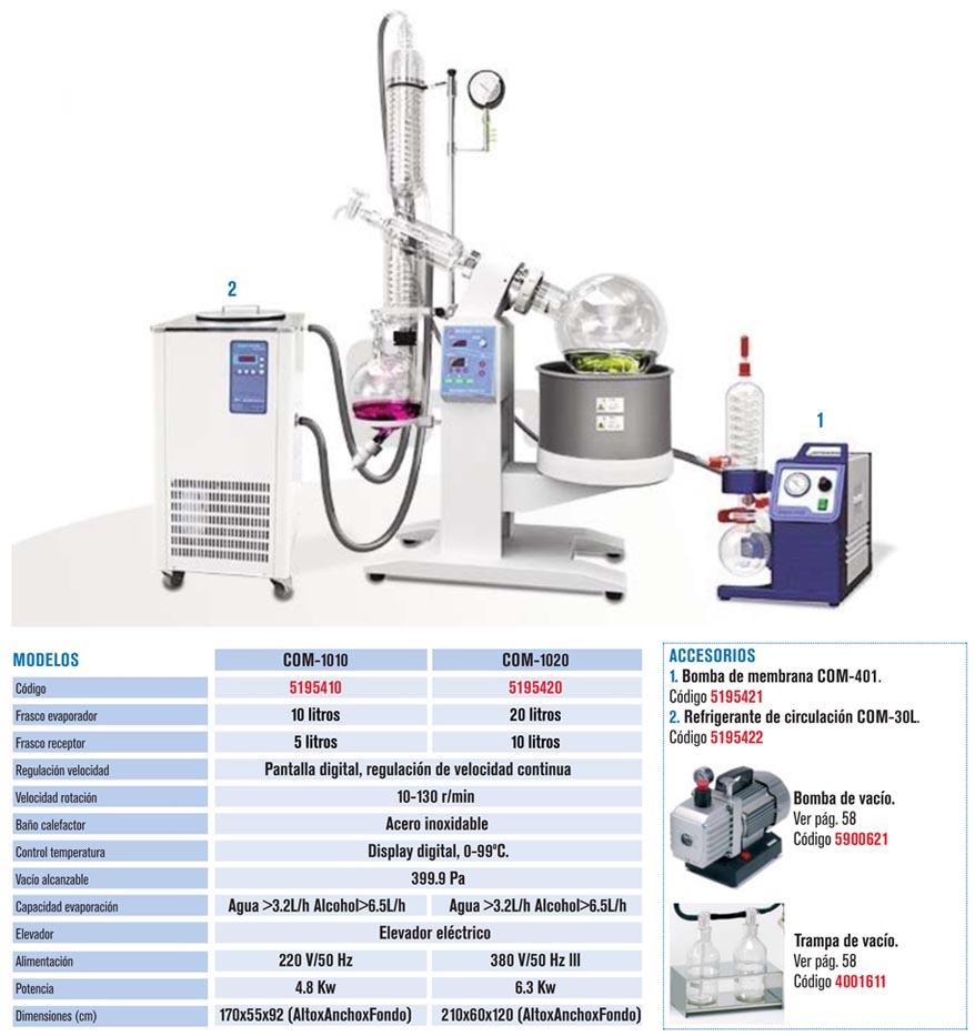 Dos modelos a elegir. con frascos evaporador/receptor de 10/5 litros o de 20/10 litros.