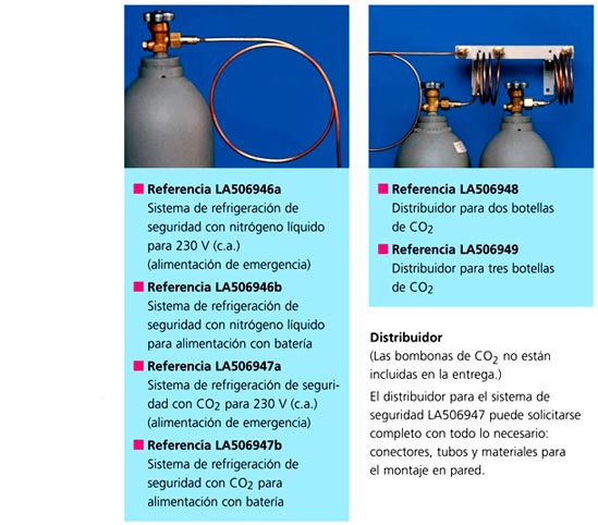 Protegen contra aumentos de temperatura, manteniendo una temperatura constante prefijada entre 0ºC y -70ºC, mediante el aporte de Nitrógeno líquido o C0².