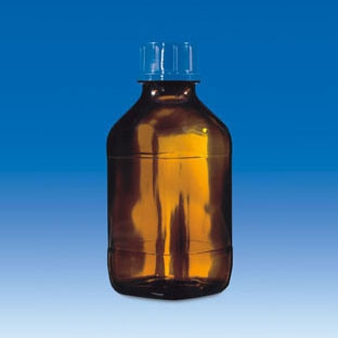 Frasco de vidrio topacio (cidrio de soda) con rosca GL45, con un revestimiento de acrilato de etileno para mayor seguridad y caperuza a rosca.