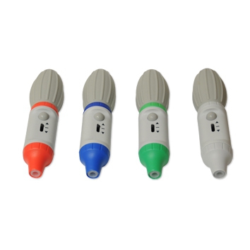 Con pera de goma, palanca para spiración/expulsión y botón para expulsión del último residuo de líquido.