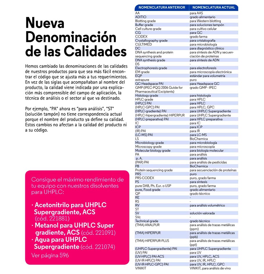 Queremos presentarte nuestro nuevo Catálogo PanReac AppliChem 2015-2017. En él podrás encontrar productos químicos y bioquímicos para laboratorio, excipientes y productos para microbiología. Hemos mejorado las especificaciones y la estabilidad de nuestros productos de acuerdo a tus necesidades. Además, encontrarás una gama ampliada de nuevos envases que ofrecen mayores ventajas de uso.